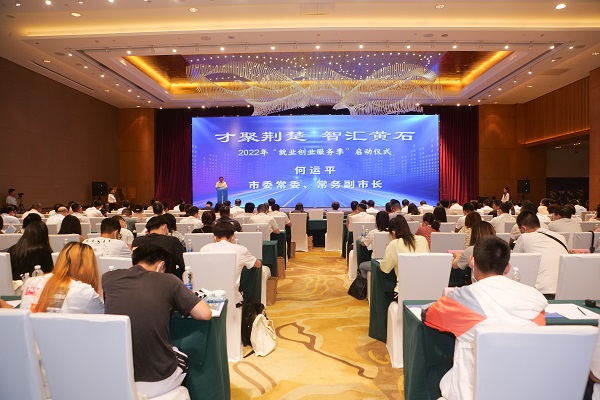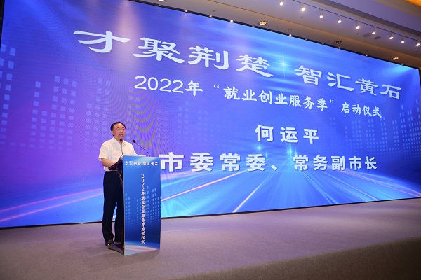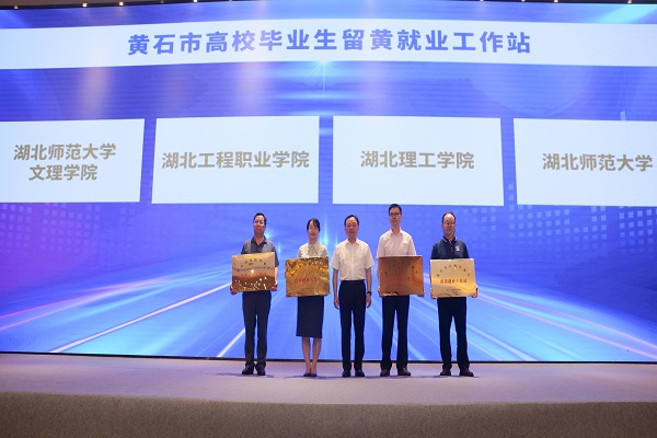 7月6日,黄石市“2022年就业创业服务季”启动式在托尼洛·兰博基尼酒店举行。市委常委、常务副市长何运平出席仪式并为黄石四所高校“高校毕业生留黄就业工作站”授牌,校党委副书记杨之毛出席活动并代表学校接受授牌。