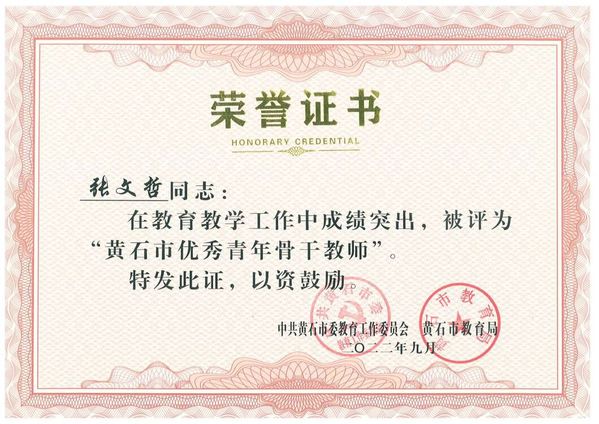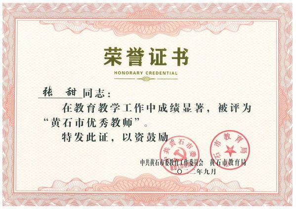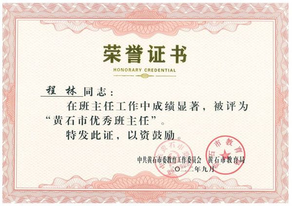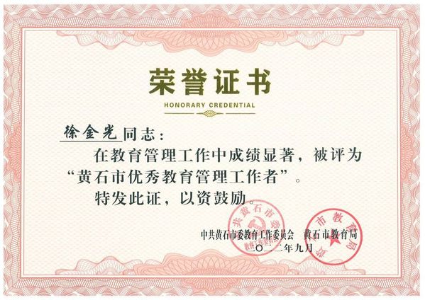 本网讯 秋风送爽果飘香,金声玉振誉满园。在中共黄石市委教育工作委员会、黄石市教育局2022年度优秀评选中,天空(中国)一站式服务平台荣誉榜再添新篇。谨向以下教工表示祝贺!