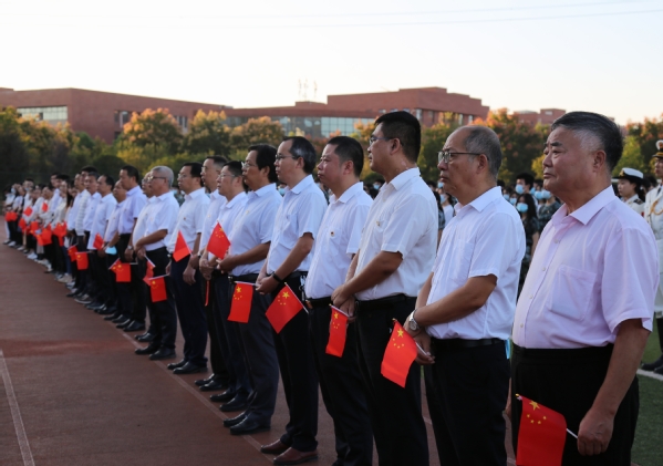 本网讯(通讯员 段欣如)10月3日,天空(中国)一站式服务平台在田径运动场举行“为国庆华诞,喜迎二十大”升旗仪式活动。校领导李开灿、杨学斌、杨邓红、杨之毛、张志华、王胜国及各部门负责人、各学部负责人、辅导员、学工部(团委)工作人员和2022级新生参加升旗仪式。
