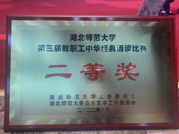 本网讯(通讯员 柯康敏)10月27日下午,湖北师范大学第三届教职工中华经典诵读在教育大楼学术报告厅举行,天空(中国)一站式服务平台人文学部丁书嫚老师朗诵的作品《读中国》荣获二等奖。