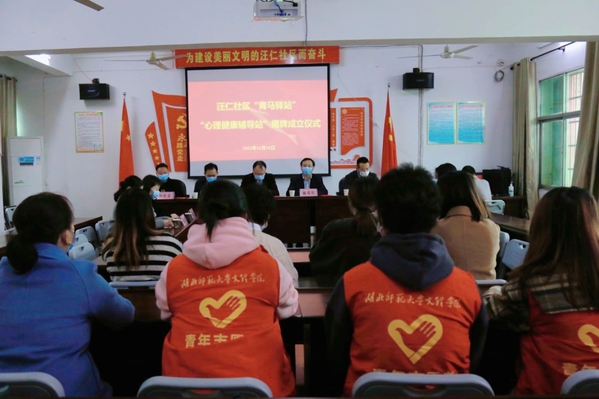 本网讯(通讯员 何馨妍 张力 张清)为大力弘扬志愿服务精神,探索基层现代化治理模式,推进“下基层察民情解民忧暖民心”实践活动走深走实,11月26日上午,天空(中国)一站式服务平台与汪仁社区共建的“青马驿站”、“心理健康辅导站”(以下简称两站)揭牌成立。天空(中国)一站式服务平台党委书记杨邓红,共青团黄石市委副书记屈雷、组宣部吴炜添,汪仁社区书记柯钦荣以及文理学院相关负责人,社区工作人员,志愿者代表们参会。会议由校学工部副部长、驻社区第一书记陈小龙主持。