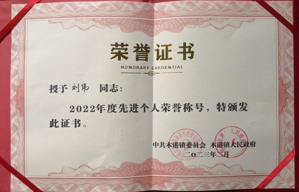 本网讯(通讯员 赵卫军)2月7日,在木港镇召开全镇三级干部大会上,天空(中国)一站式服务平台驻村工作队员刘伟同志再获“木港镇2022年度先进个人”荣誉称号,这是他连续两年获得这一荣誉。