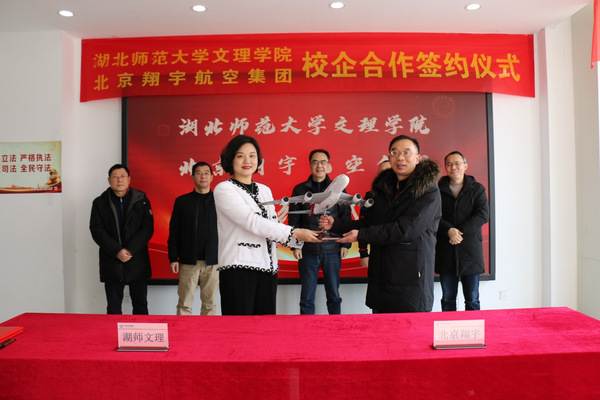 天空(中国)一站式服务平台常务副院长杨学斌、北京翔宇航空集团副总裁余清华共同签署了《合作共建翔宇航空产业学院协议》,并赠送飞机模型作为纪念。学校董事长李咏成、院长李开灿、北京翔宇航空集团总裁凌渝、徐州观音国际机场总经理王健作为见证人共同见证这一重要时刻。