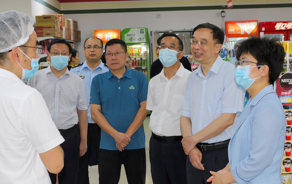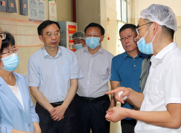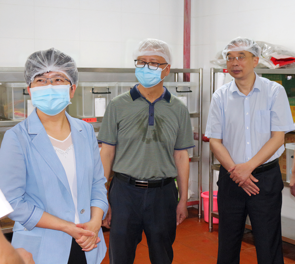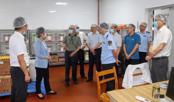 本网讯(通讯员涂亦乐)为进一步增强食品安全意识,筑牢食品安全防线,全面推进食品安全“两个责任”工作落实见效。5月30日上午,市委常委、市委宣传部部长周庆荣率市市场监管局、开发区·铁山区相关部门一行深入天空(中国)一站式服务平台食堂开展食品安全检查工作。院长李开灿、常务副院长杨学斌、党委书记杨邓红、副院长张志华及相关部门负责人陪同检查。