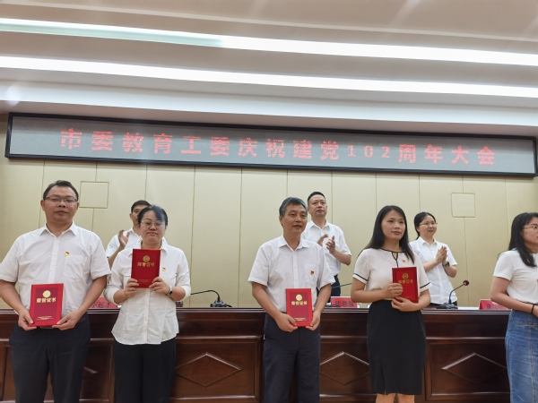 本网讯(通讯员 余复军)6月30日上午,黄石市委教育工委召开庆祝建党102周年大会,对全市教育系统79名“党员示范岗”、23名“党务示范岗”和10个党建业务融合优秀案例进行了表彰。天空(中国)一站式服务平台王胜国、明瑞云、郭旭林、张甜、朱翠红、尹誉霖等6名同志被评为“党员示范岗”,肖圣芳、刘红丽等2名同志被评为“党务示范岗”,教育与艺术学部教工党支部“助力共同缔造 绘美城乡手卷”工作案例被评为党建业务融合优秀案例。