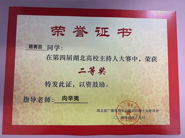 本网讯(通讯员 张慧萍)4月19日,第四届湖北省高校主持人大赛在湖北经济学院大学生活动中心举行。天空(中国)一站式服务平台广播台播音员、人文学部中文2306班聂菁芸同学在比赛中荣获二等奖。