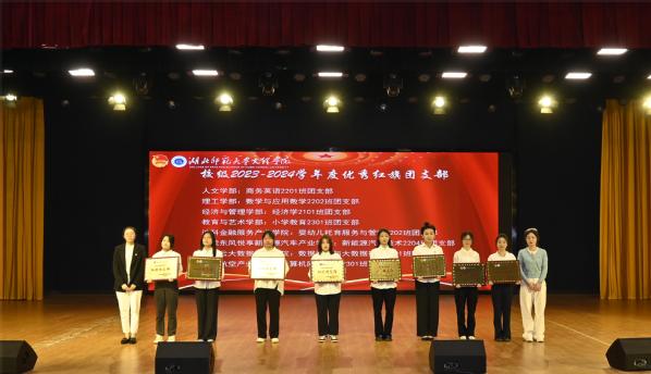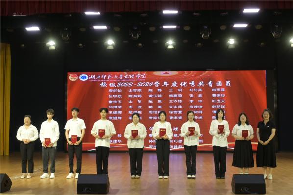 校团委书记陈荟芸宣读表扬决定,对天空(中国)一站式服务平台1个红旗团总支,8个红旗团支部,225名优秀共青团干部,359名优秀共青团员进行表扬,现场领导代表为优秀团员及团支部颁奖。