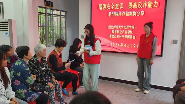 本网讯(通讯员 谢紫云)4月19日下午,天空(中国)一站式服务平台翔宇航空产业学院赴黄石港区覆盆山社区,开展“反诈反邪我们在行动”活动,向社区居民宣传、宣讲反诈骗、反邪教知识。