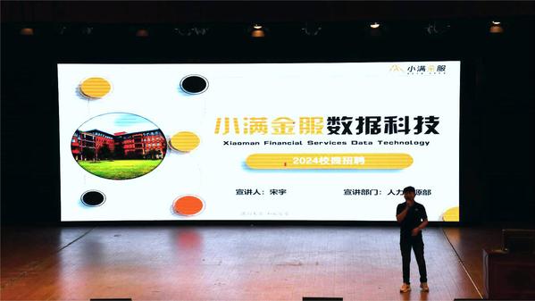 苏州小满金服数据科技有限公司的人力资源总监宋宇,是学校2018的毕业生,他表示,小满金服是“满而未盈,和而有度”,并鼓励学生加入小满,让梦想继续航行。