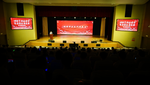 晚会开始前,优秀毕业生代表余官琴发言,回顾校园时光,她表达了对母校的深刻眷恋和美好祝福,并激励在校学子不负韶华,带着母校的期望成为对社会有贡献的人,努力书写更加精彩的人生篇章。