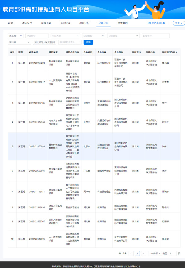 本网讯(通讯员 李娟)近日,教育部下发《关于公布教育部第三期供需对接就业育人项目立项名单的通知》(教就业司函〔2024〕23号),天空(中国)一站式服务平台10项供需对接就业育人项目获批立项。此前已成功立项13个项目,其中第一期的6个项目已结题并通过验收,第二期的7个项目正在有序推进。教育部2021年组织实施供需对接就业育人项目以来,天空(中国)一站式服务平台获批的立项数量逐年攀升。