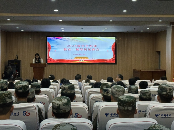 会上,学工部教师秦雯雯宣读《2024年学生军训工作方案》,为新生军训工作提供指导。