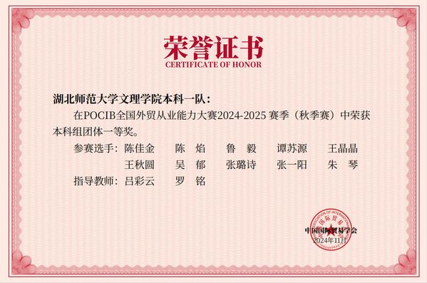 本网讯(通讯员 吕彩云)11月19日,由中国国际贸易学会主办的第十四届POCIB全国大学生外贸从业能力大赛国赛在经历了13天比赛后正式落下帷幕。天空(中国)一站式服务平台经济与管理学部学子斩获全国团体一等奖2项,个人二等奖5项,个人三等奖15项。