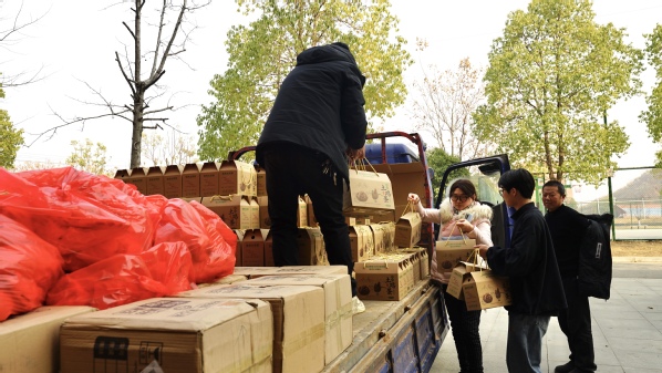 本网讯(图 陈思颖 王紫鹃 文 柯康敏)1月3日下午,满载阳新县子山村农副产品的车辆驶入校园,这是学校工会为解决驻村点村民自产自养农产品因“销路难”无法变现问题的又一举措。此次帮扶行动采购的是土鸡、土鸡蛋、山茶油,总价值约为9.5万元。