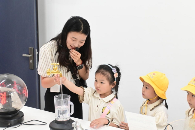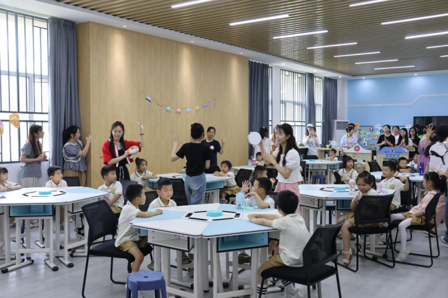 按“一班一活动,一师一幼儿,一室一指导”的原则,贴合实训室的特点,活动在早期阅读实训室、蒙台梭利实训室、保育实训室、手工实训室、智慧幼儿园实训室、奥尔夫实训室和物理演示实验室同时进行。大学生们精心策划了活动,包括科技展览、皮影戏、手工制作、音乐游戏、趣识动物、娱乐互动等。这些活动不仅推动孩子们的能力发展,还增进了师生的互动与交流。孩子们在活动中展现出高昂的热情和积极性,他们与老师一起完成任务,在快乐中接受知识,在观察中学会思考。“外展内延·融合共创”活动,旨在促进学前教育协同发展,共建高质量教育体系。活动不仅有利于促进课程改革、专业发展和学生自身的发展,也通过和地方幼儿园的共建,为幼儿教育注入了鲜活的力量。